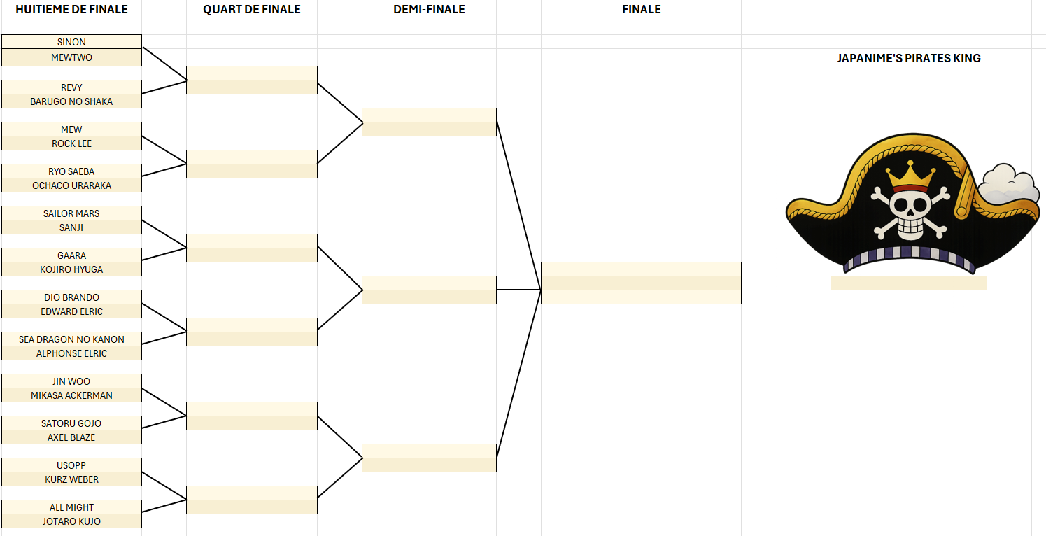 Tournois Japanime's Pirates King Tournament du 01/02/2026 Relance Huitième de finale (7) - COMBAT ILE DESERTE - Sans Action V3 |